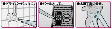 ●ガス、水道、エアーなどの配管工事やボルト、ナットの締め付けなどに