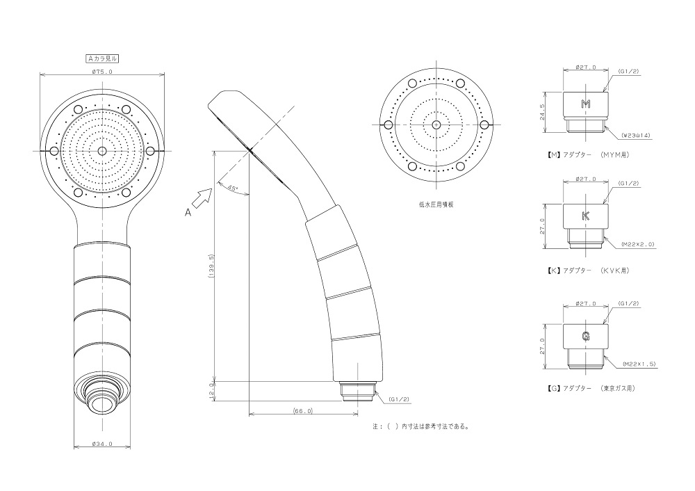 ●低水圧(低流量)対応用シャワーヘッド 動水圧0.05MPa、流量5L/分の条件で使用できます。