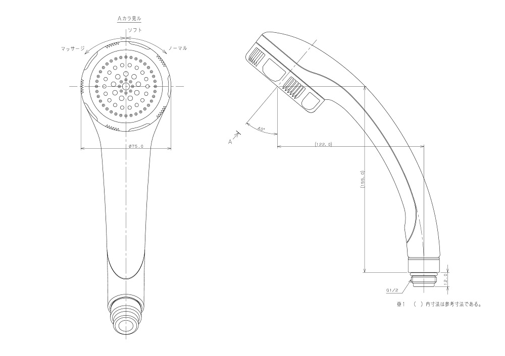 ●リング部の回転:シャワー・ソフト・マッサージの切替え