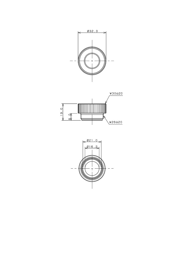 ●W30山20ネジ(自在水栓、混合栓の大口径パイプ)に、外径16ミリ・W26山20ネジのパイプを取付けるアダプター