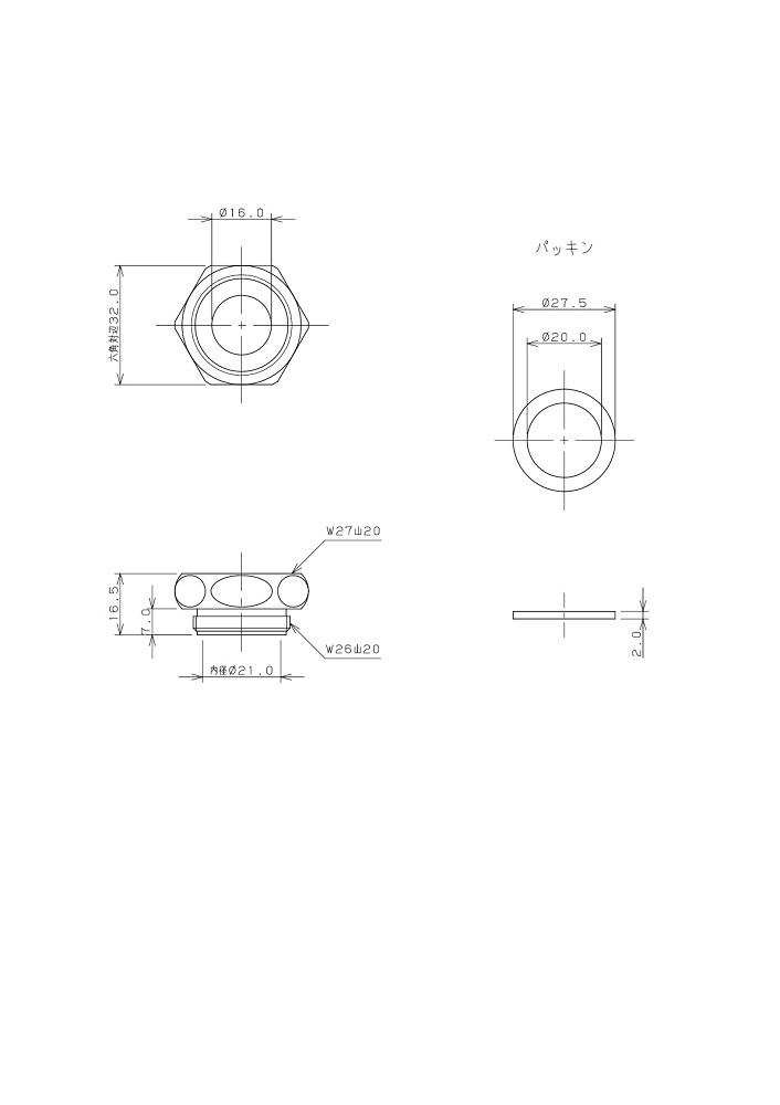 ●17.5ミリパイプネジ(MYM製バス混合栓・YuKo台付2ハンドル混合栓)に、外径16ミリ・W26山20ネジのパイプを取付けるアダプター