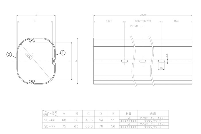 配管化粧カバー スリムダクト SD-77