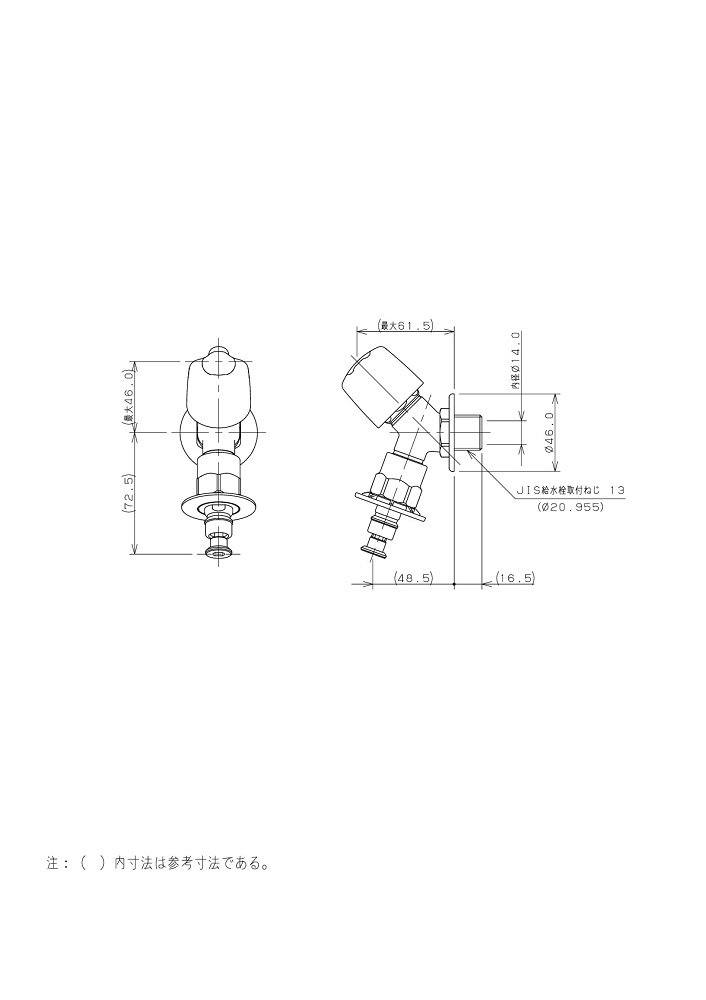 洗濯機用水栓 721-517K-13(ストッパー、送り座付)