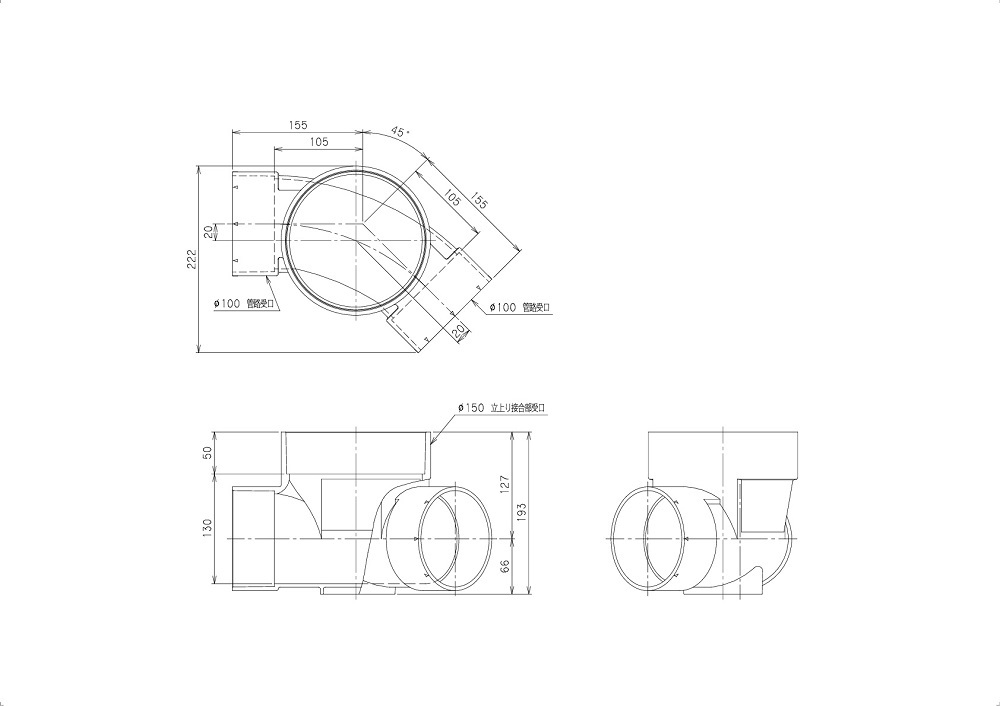 小口径マス 兼用 45度曲り 100-150