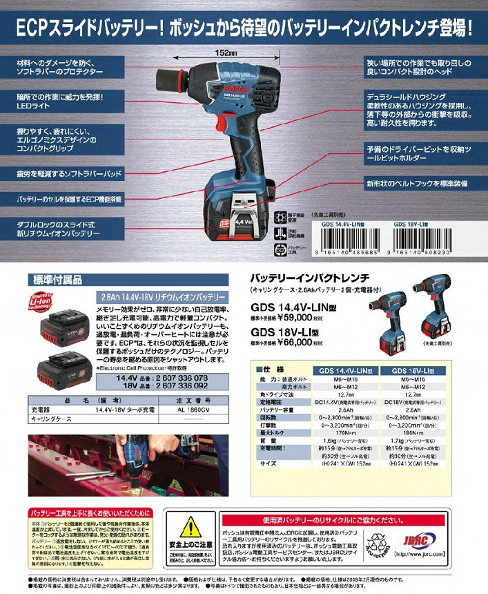 ボッシュ コードレスインパクトレンチ GDS 14.4V-LIN