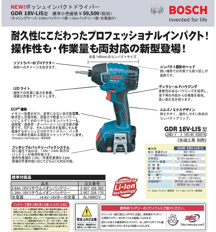 ボッシュ コードレスインパクトドライバー GDR 18V-LIS
