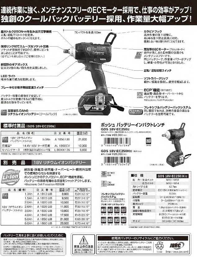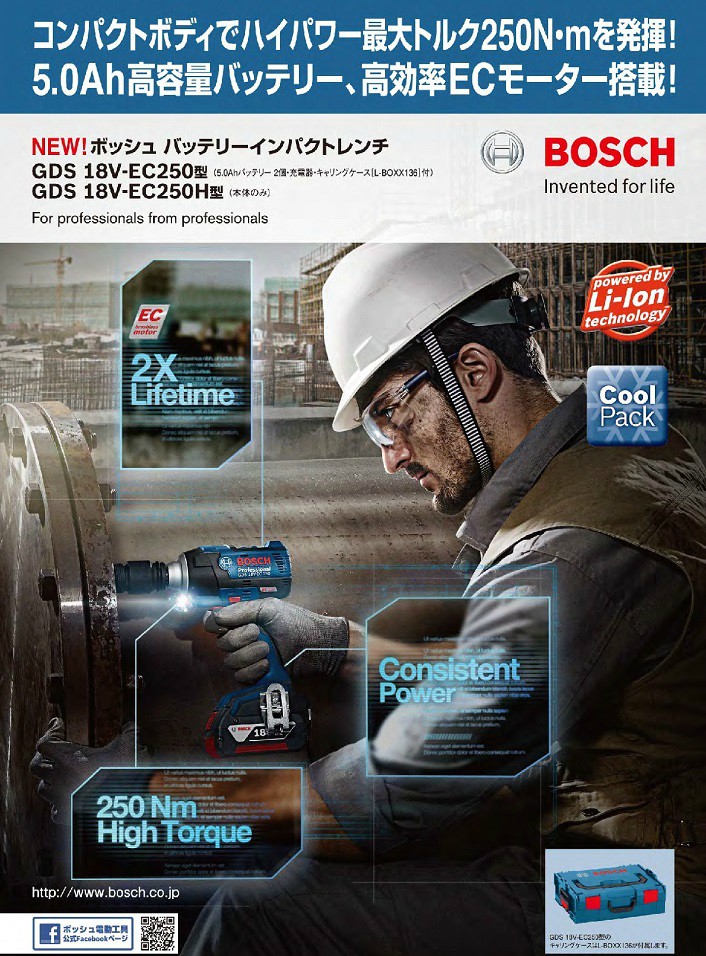 ボッシュ コードレスインパクトレンチ GDS 18V-EC250/GDS 18V-EC250H (本体のみ)