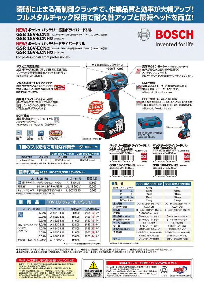 ボッシュ コードレスドライバードリル GSR 18V-ECN/GSR 18V-ECNH(本体のみ)