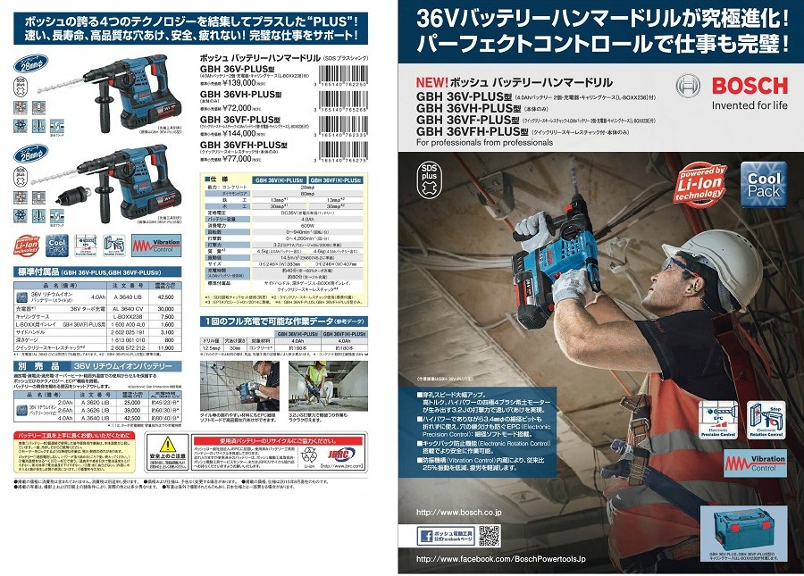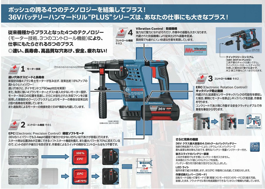 ボッシュ コードレスハンマードリル GBH 36V-PLUS/GBH 36VH-PLUS(本体のみ)