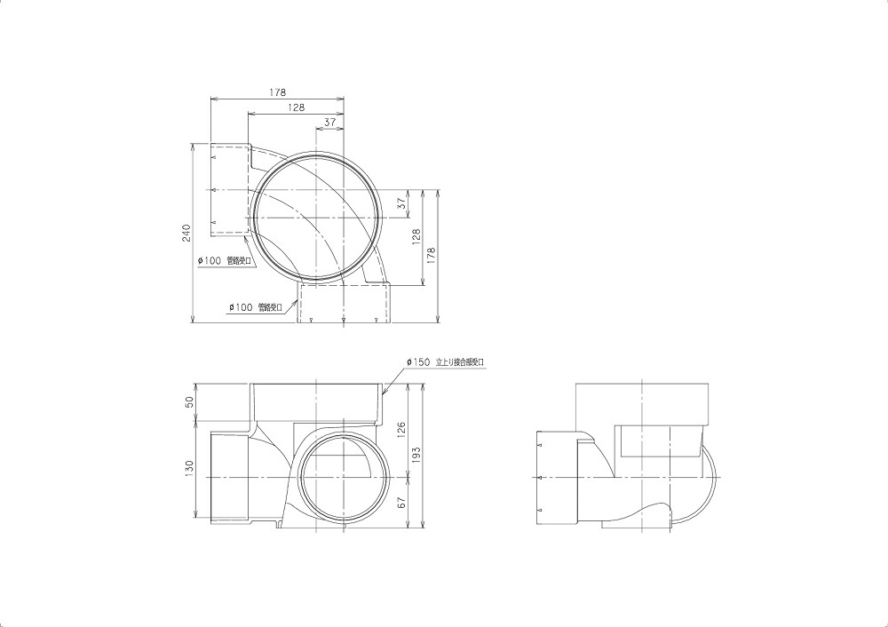 ●管路タイプ:主管100 蓋径150