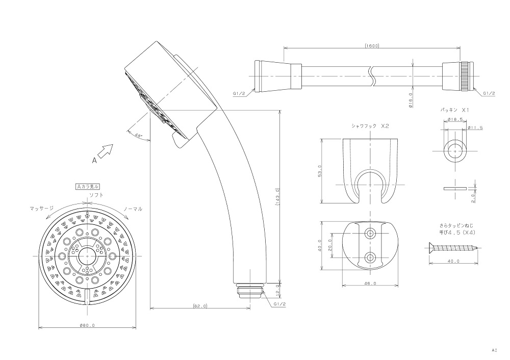 ●シャワーヘッドはシャワー、ソフトシャワー、マッサージシャワーの3種類の切替えができます。