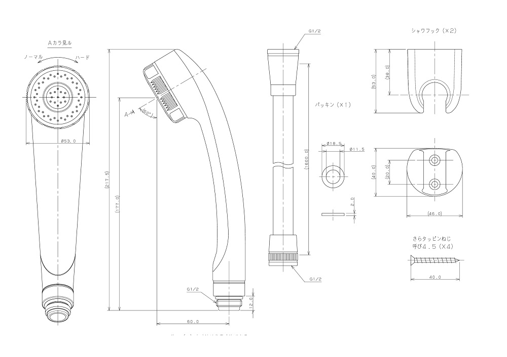 ●シャワーホース接続部ネジG1/2