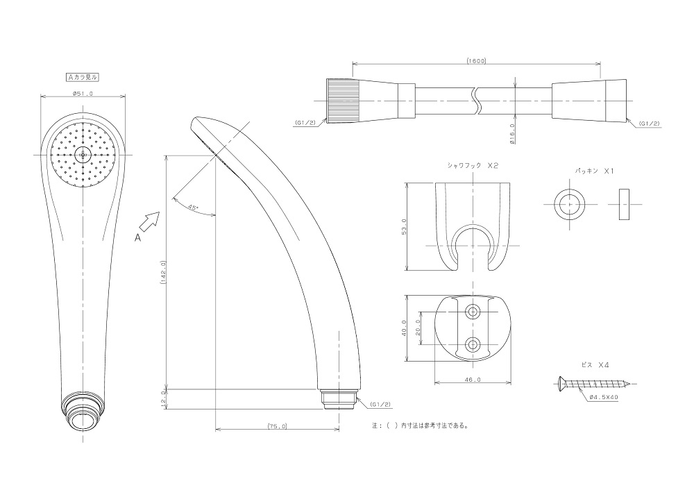 ●シャワーホース接続部ネジG1/2