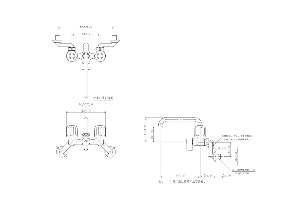 2ハンドルシャワー混合栓(一時止水) 1375S