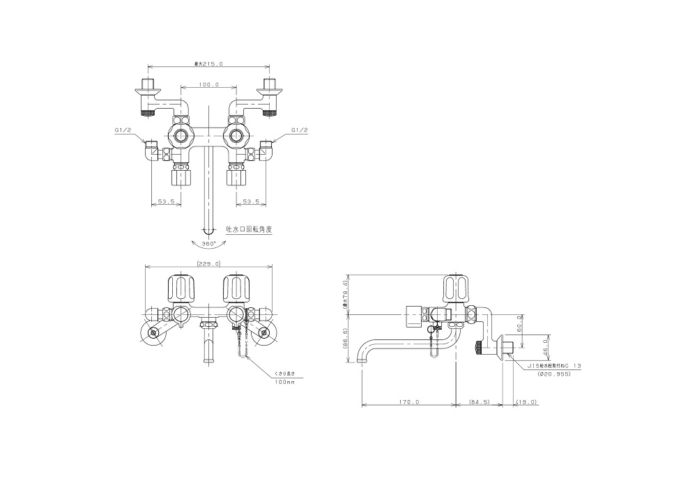 ●ソーラーと給湯器を併用接続する場合のバスシャワー切替混合栓
