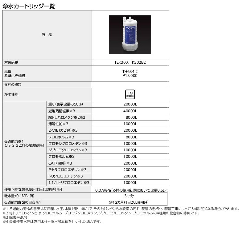 TOTO 取替用浄水カートリッジ(13物質除去、ビルトイン形) TH634-2