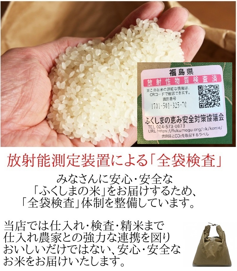 ・おいしいだけではなく、安心・安全なお米をお届けするために放射能測定装置による全袋検査を行っております。