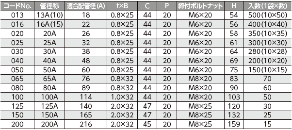●適合管:適合管:塩ビ管(VP)