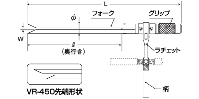 ●VR-450は、先端差込部は50㎜の段差を設けてあり、差し込み易くなっています