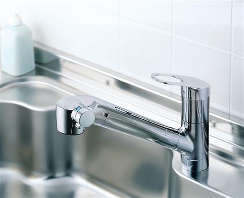 TOTO 台付シングル混合水栓(エコシングル、浄水カートリッジ内蔵、吐水切替) TKGG38E1