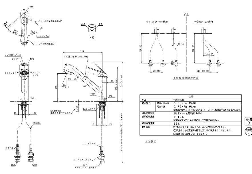 TOTO 台付シングル混合水栓(エコシングル、吐水切替) TKGG31EB