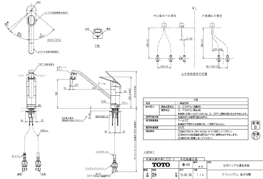 TOTO 台付シングル混合水栓(エコシングル、吐水切替) TKGG31EC