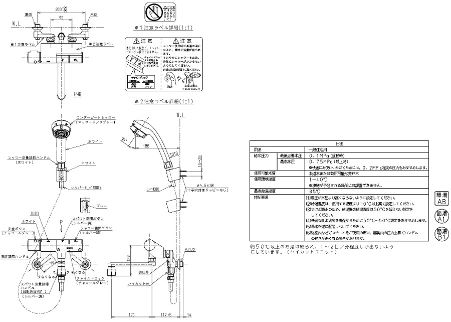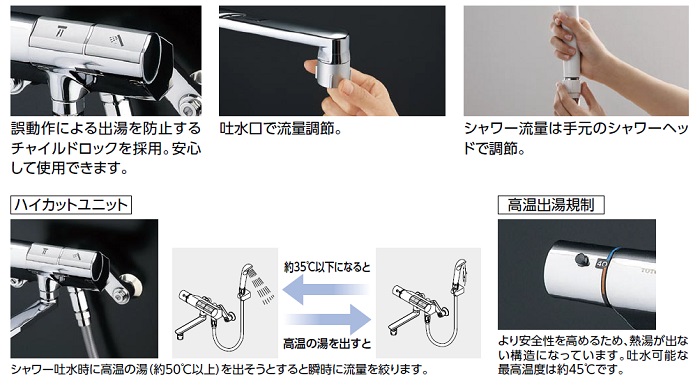 TOTO 壁付サーモスタット混合水栓(タッチ、ワンダービート、調圧弁、流調弁、ハイカット) TMN40TJ