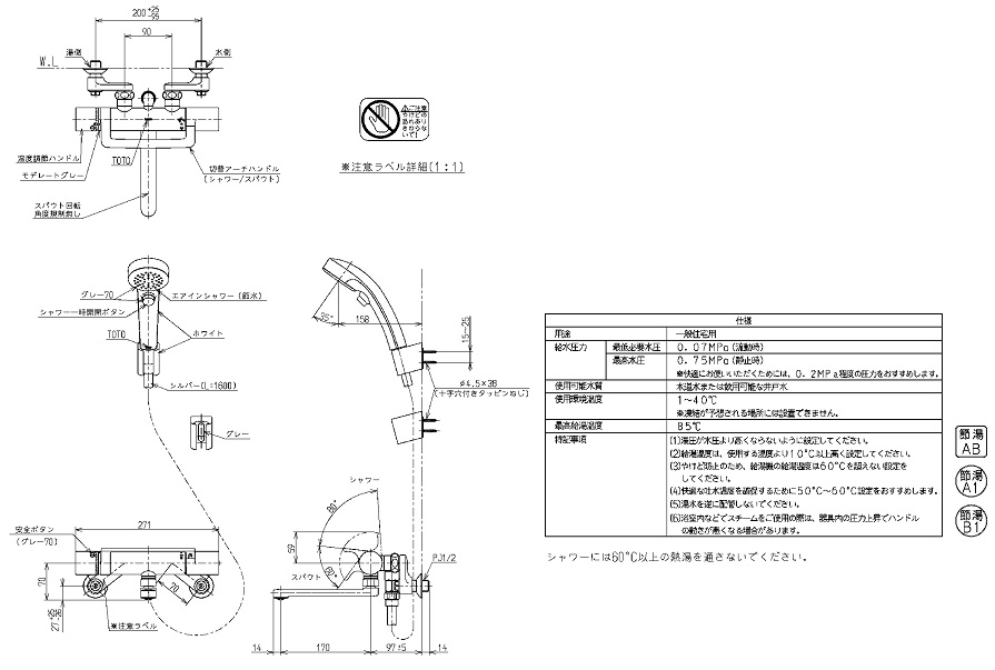 TOTO 壁付サーモスタット混合水栓(エアインクリック、調圧弁) TMGG40QEW