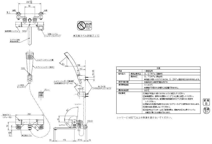 TOTO 壁付サーモスタット混合水栓(エアイン) TMGG40ECR