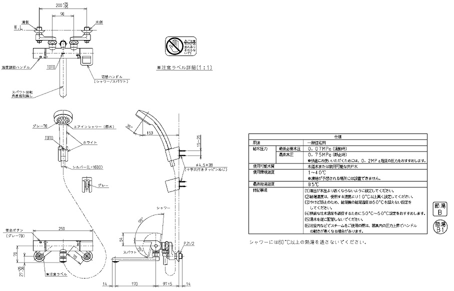 TOTO 壁付サーモスタット混合水栓(エアイン) TMGG40E