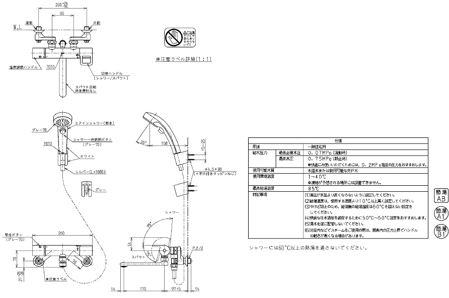 TOTO 壁付サーモスタット混合水栓(エアインクリック、調圧弁) TMGG40EW