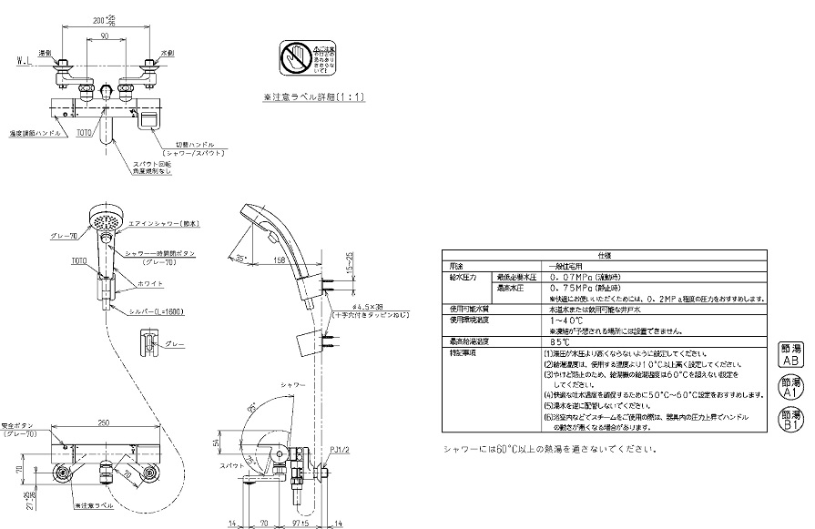 TOTO 壁付サーモスタット混合水栓(エアインクリック、調圧弁) TMGG40SEW