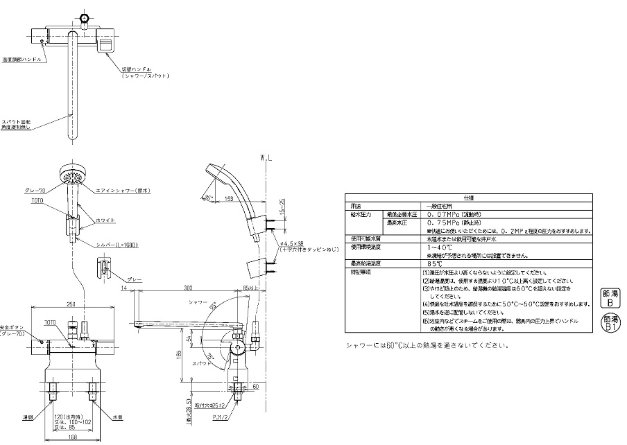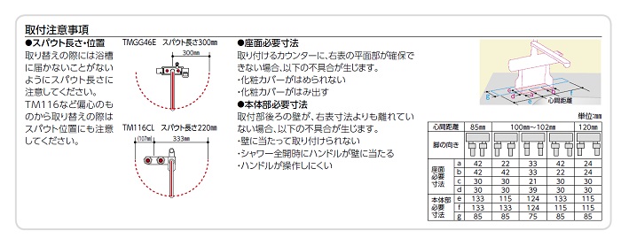 取付寸法 85/100~102/120mm |