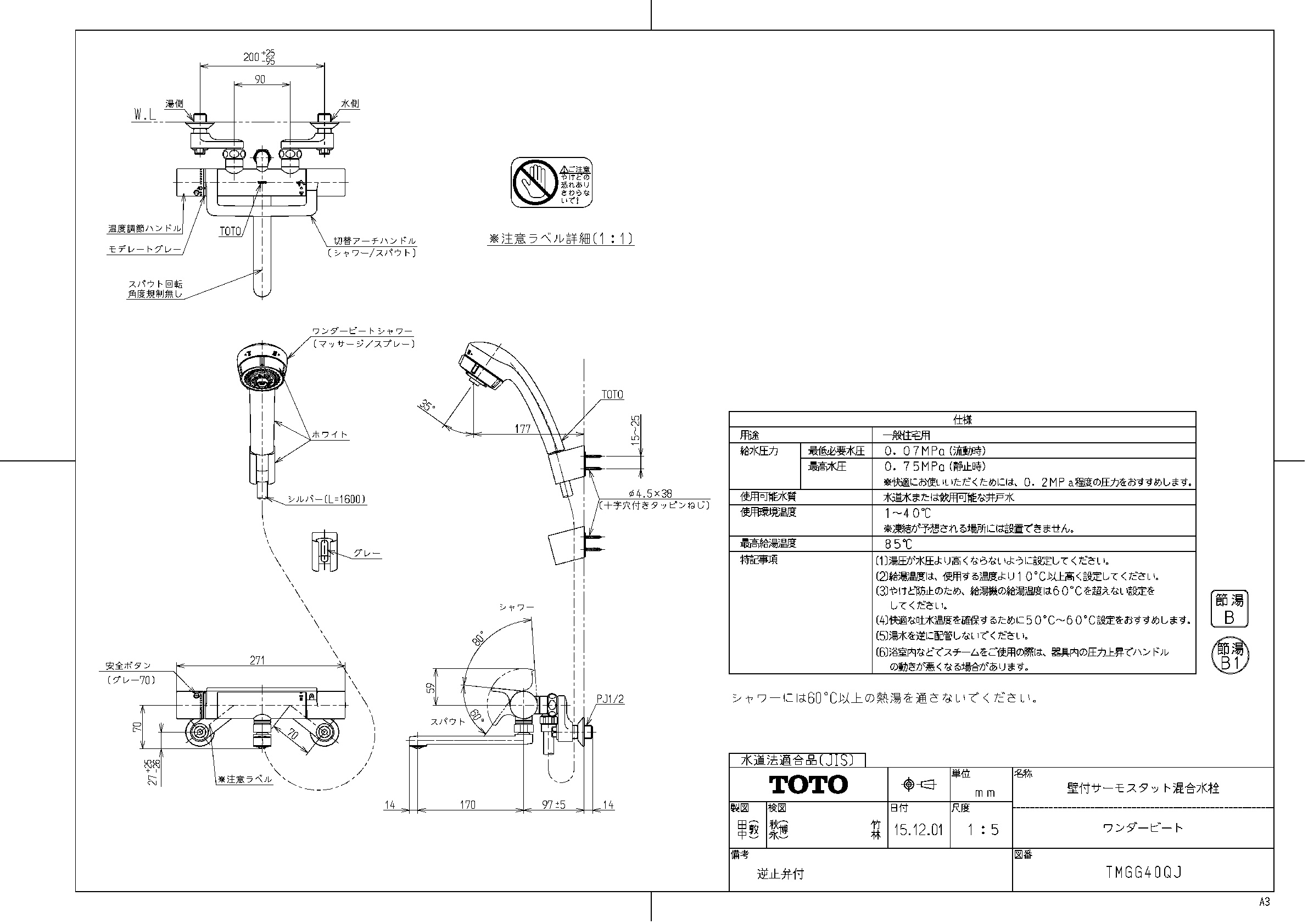TOTO 壁付サーモスタット混合水栓(ワンダービート) TMGG40QJ