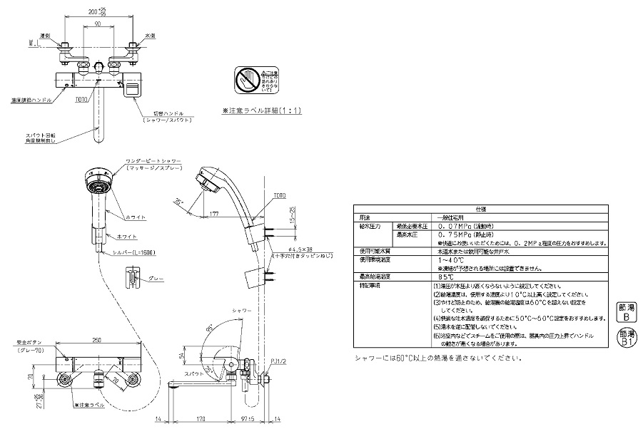 TOTO 壁付サーモスタット混合水栓(ワンダービート) TMGG40J