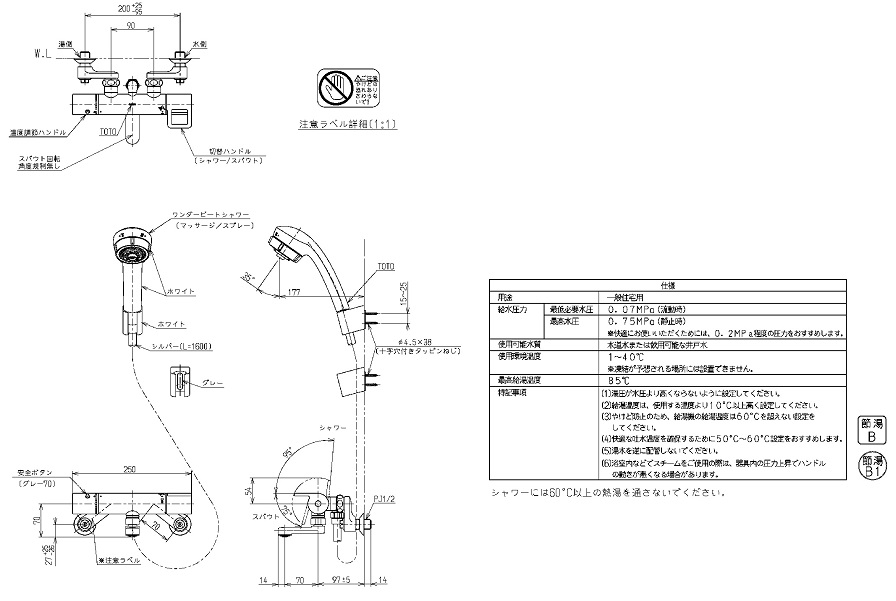 TOTO 壁付サーモスタット混合水栓(ワンダービート) TMGG40SJ