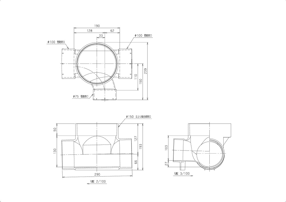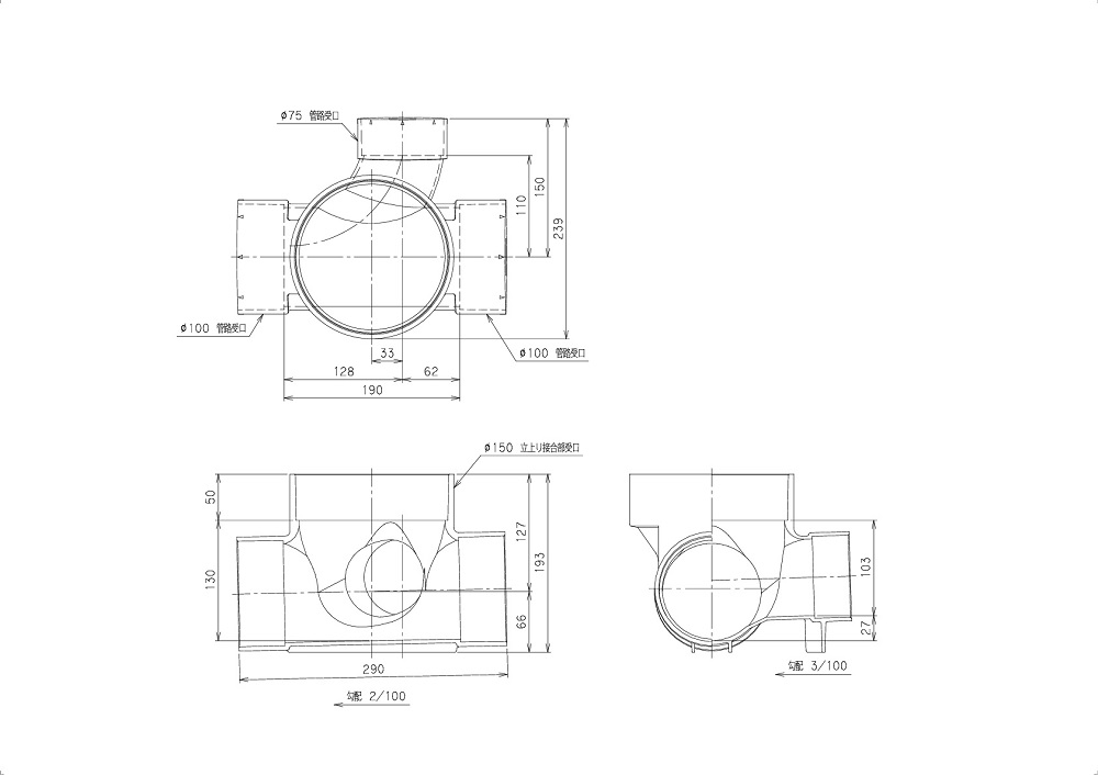 ●管路タイプ:主管100 枝管75 蓋径150