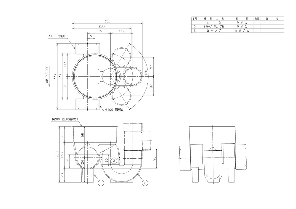 ●管路タイプ:主管100 トラップ径75(差口) 蓋径200