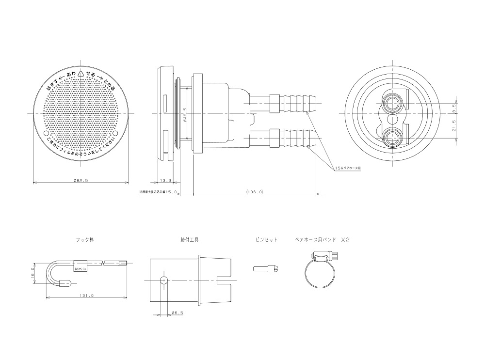 ペアーホース用 ストレート型一口循環金具
