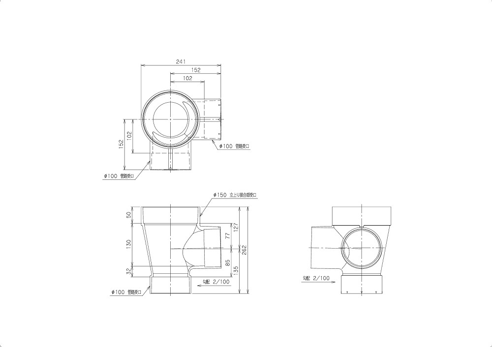 ●管路タイプ:主管100 蓋径150