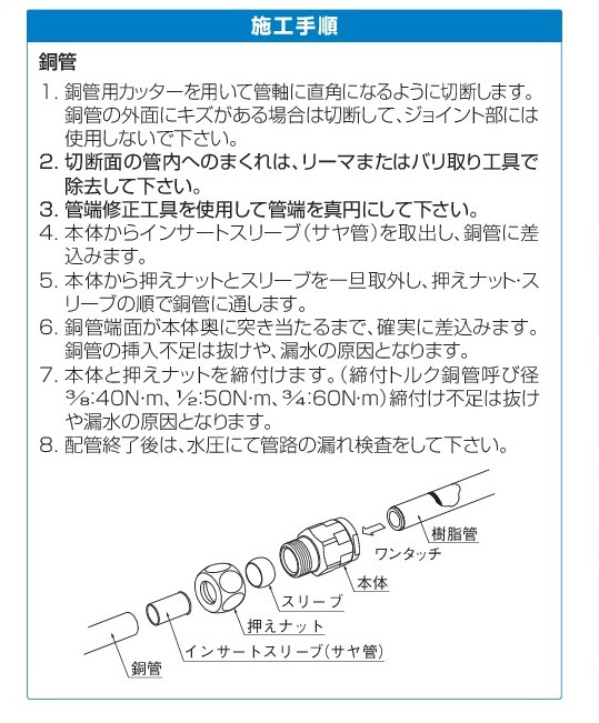 ●銅管と樹脂管(架橋ポリエチレン管・ポリブテン管)が接続できます。