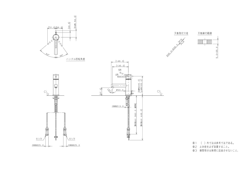 ●取付穴径:35〜38mm 厚:5〜35mm