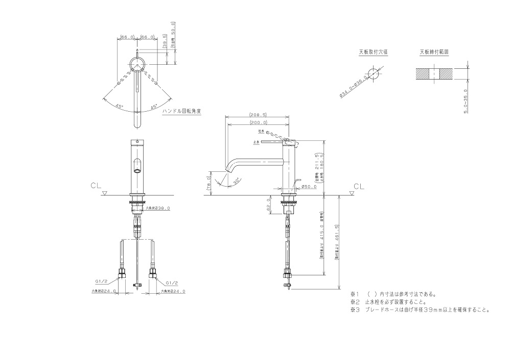 ●取付穴径:34〜36mm 厚:5〜35mm