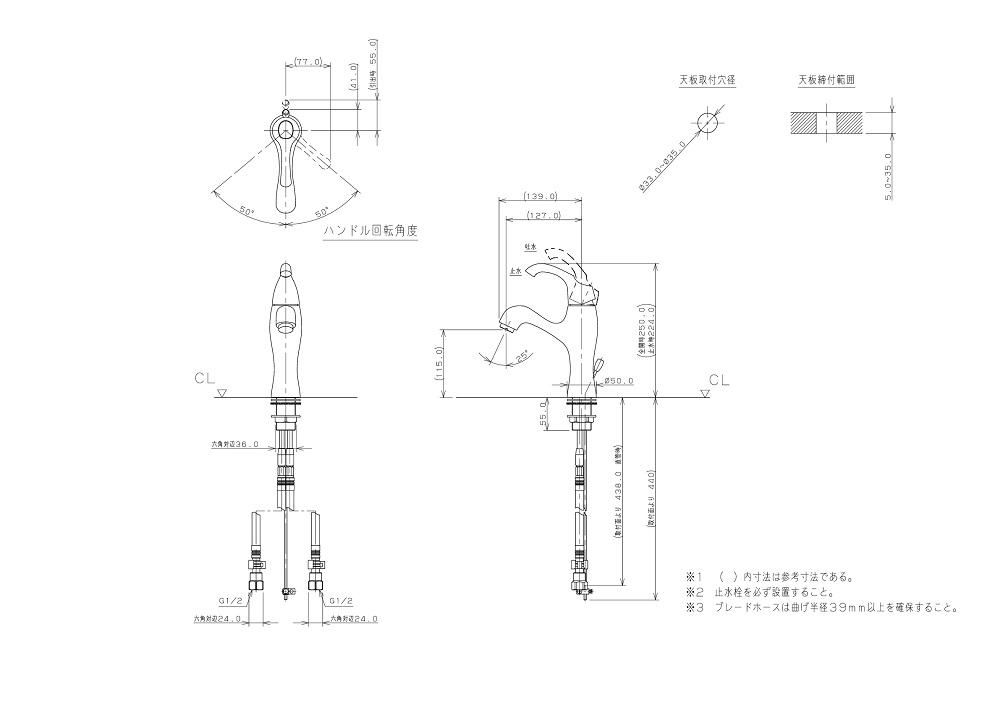 ●取付穴径:33〜35mm 厚:5〜35mm