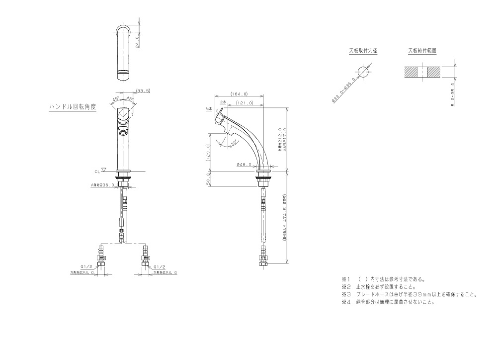 ●取付穴径:33〜35mm 厚:5〜35mm