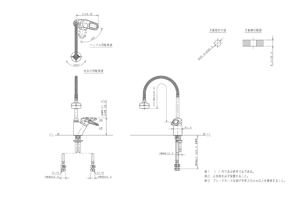 ●取付穴径:35〜38mm 厚:5〜35mm