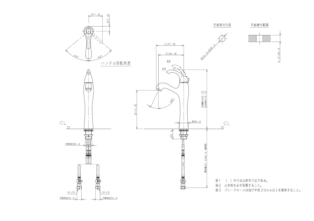 ●取付穴径:33〜35mm 厚:5〜35mm