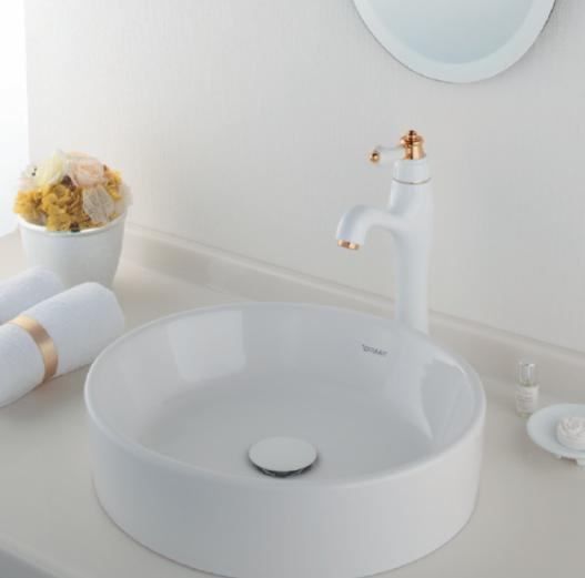 流れるような繊細な曲線が、まるで首をもたげた水鳥のように水廻りを華やかに彩ります。