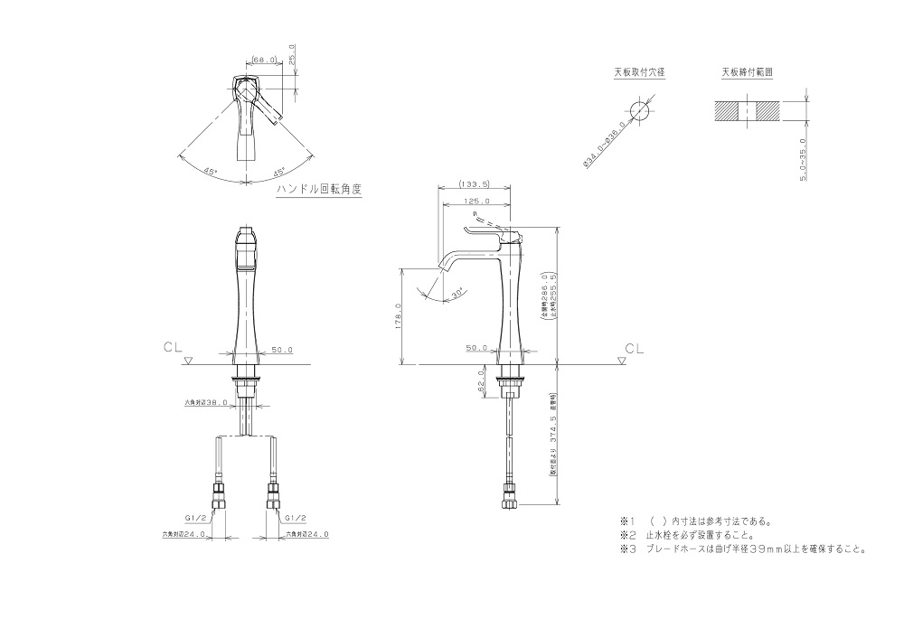 ●取付穴径:34〜36mm 厚:5〜35mm