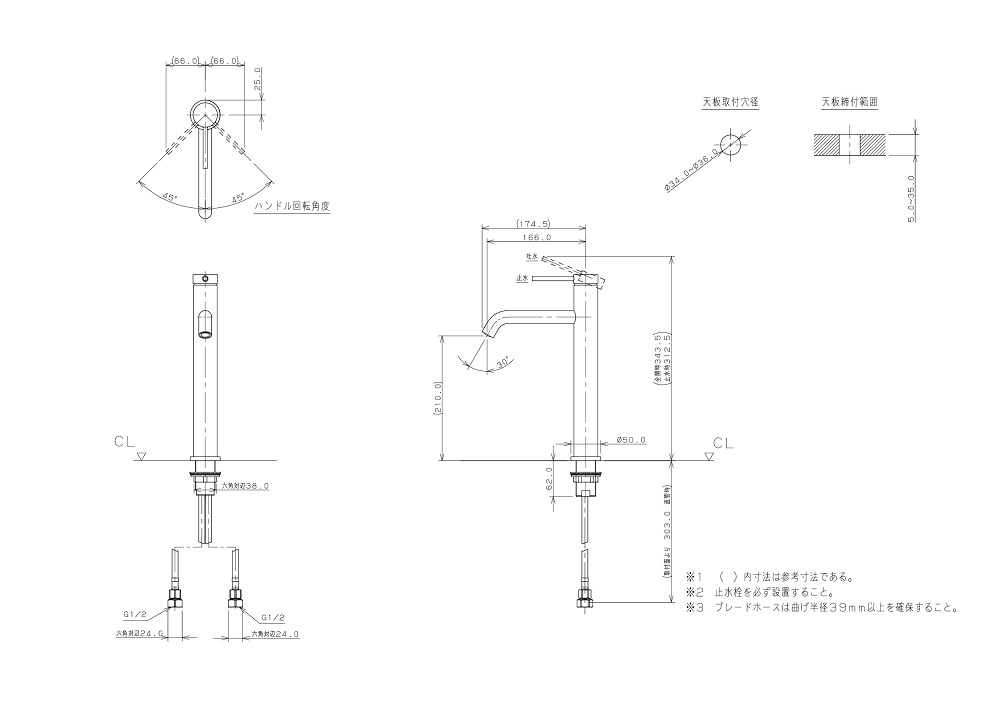 ●取付穴径:34〜36mm 厚:5〜35mm